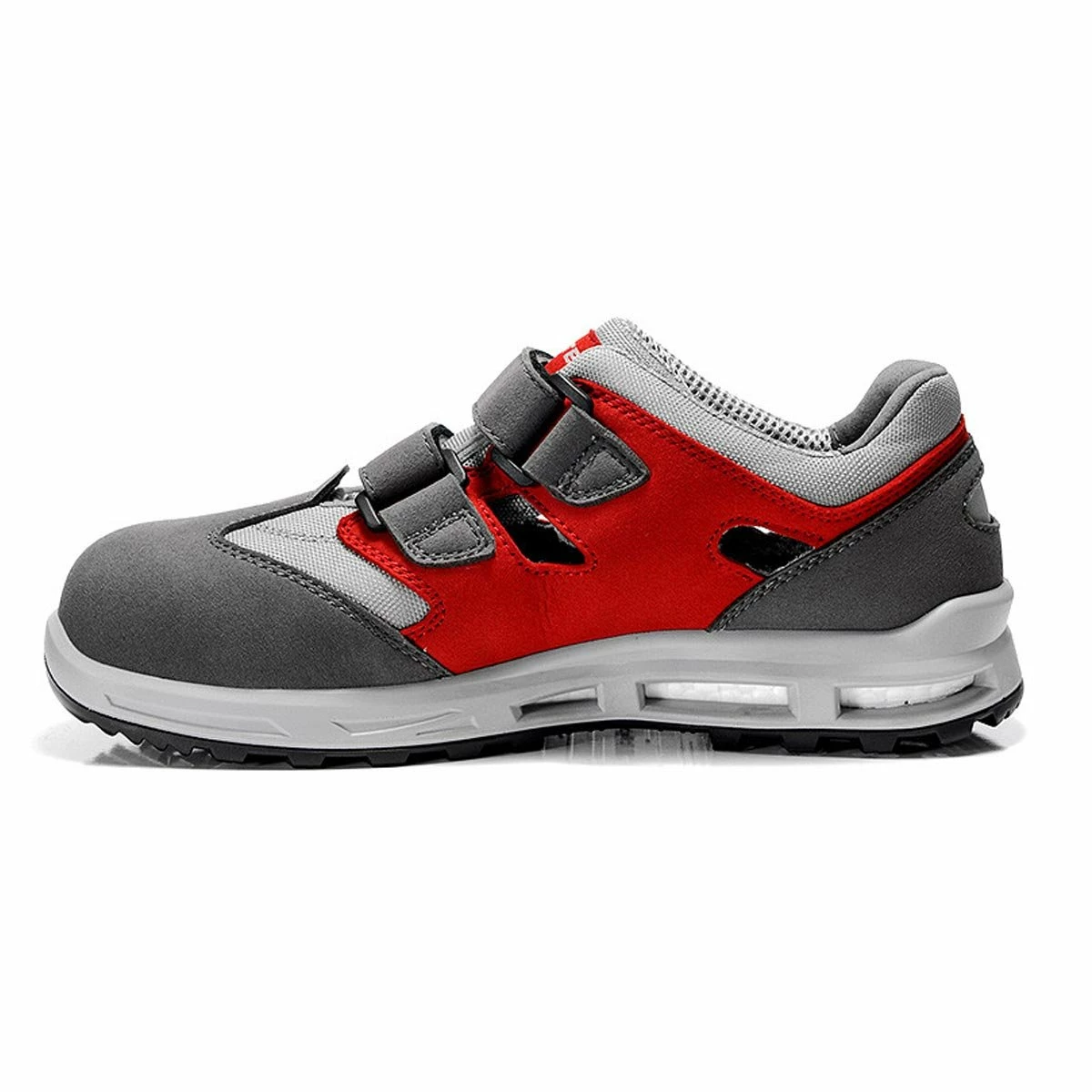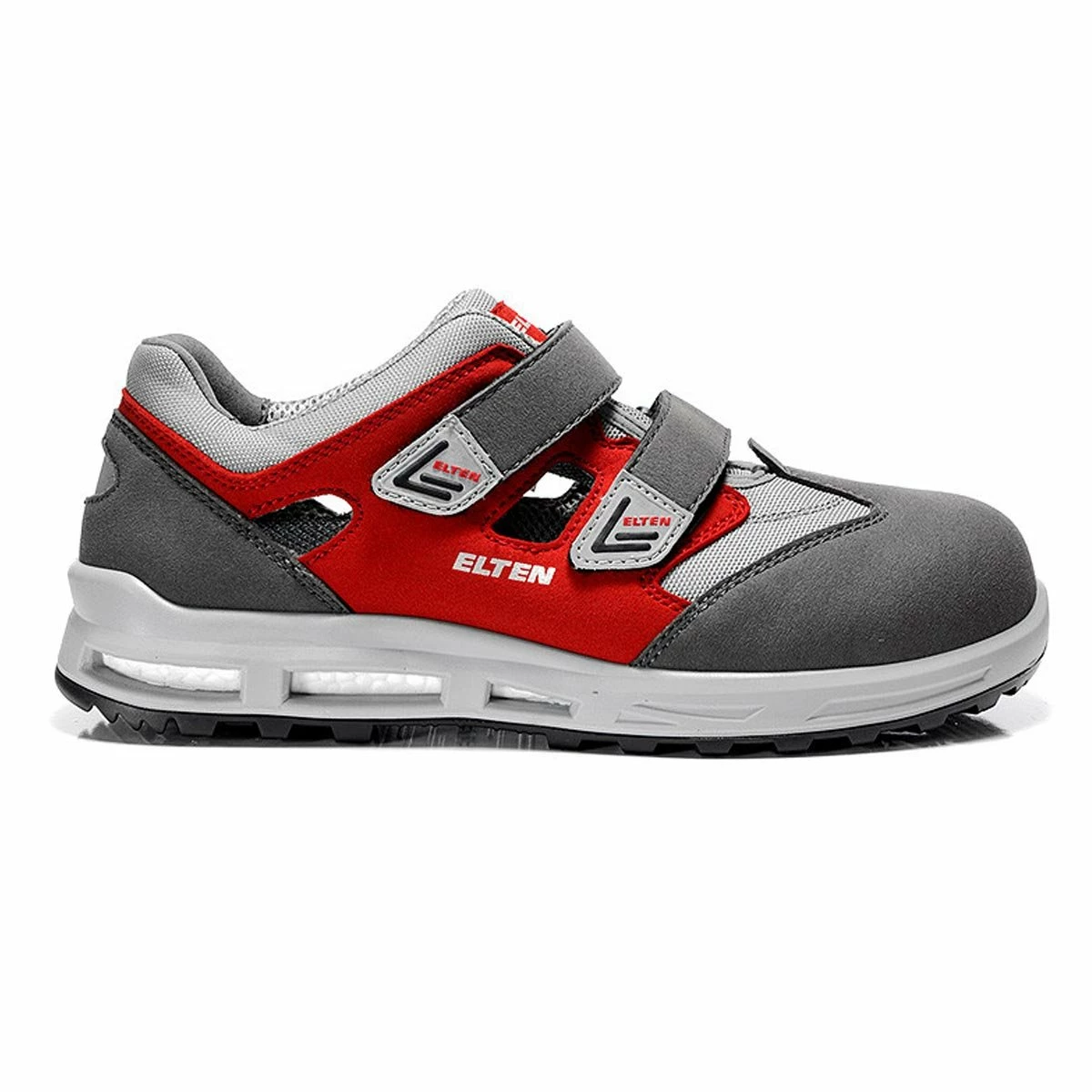 Mit dieser Sicherheitssandale mit Klettverschluss gehören Schweißfüße der Vergangenheit an: Der TRAVIS grey red easy ESD S1 ist ein Sicherheitsschuh, der über eine Sohle der ELTEN WELLMAXX Familie verfügt. Der Sohlenkern aus dem Hightech-Material Infinergy® von BASF sorgt für eine besondere Dämpfung und gibt einen Großteil der beim Laufen aufgewendeten Energie wieder an den Träger zurück. Gelenke werden geschont und der Fuß ist nicht so schnell ermüdet. Die komplett leder- und metallfrei ausgestattete Sandale mit einem Obermaterial aus Mikrofaser sowie einem atmungsaktiven Textilfutter und angebrachten Reflexmaterial sorgt dafür, dass der Träger auch im Dunkeln nicht übersehen wird. Eine Kunststoffkappe schützt den Zehen- und Vorfußbereich. Dier ESD-fähige Sicherheitssandale verfügt über eine PU-Laufsohle, die SRC zertifiziert ist und somit für den nötigen Halt auf glatten Untergründen sorgt. Der TRAVIS grey red easy ESD S1 ist in den Größen 36 bis 48 erhältlich.