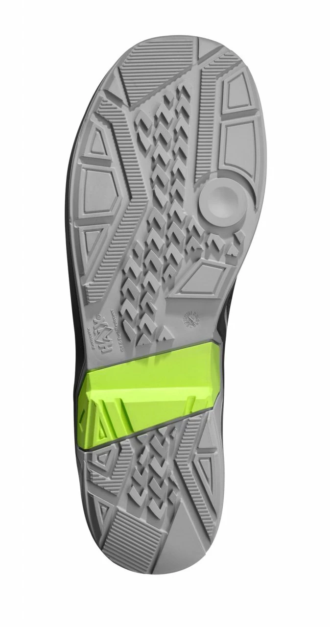 Extrem hohe Rutschfestigkeit bei gleichzeitig geringem Verschleiß durch besonderen Gummi und innovative Sohlenkonstruktion. Lamellen, speziell abgeschrägte und runde Sohlenelemente bieten optimalen Gripp sowie hohe Agilität und stabilen Halt auf glatten und nassen Oberflächen. Der PU-Dämpfungskeil mit seinem geringem Gewicht sorgt für hervorragende Laufeigenschaften. Sehr gute Isolation gegen Kälte, kraftstoffbeständig. Gemäß EN ISO 20345:2011.