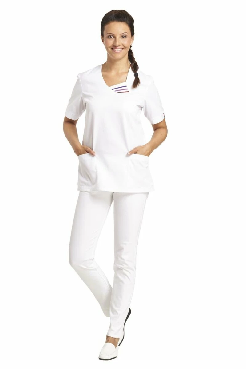 Diese modischer Leiber Damen Schlupfkasack aus pflegeleichtem Mischgewebe gefertigt. Dieser Leiber Kasack hat ein modisches Desing dank dem schmuckvollen 3-farbiger Besatz am Ausschnit. Die Seitenschlitze dieses Leiber Kasacks verschaffen mehr Bewegungsfreiheit.